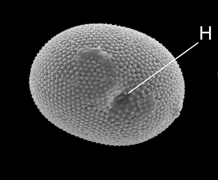 In geodiids and placospongiids; a depression on the ellipsoidal forms of sterraster, selenaster, and aspidaster.