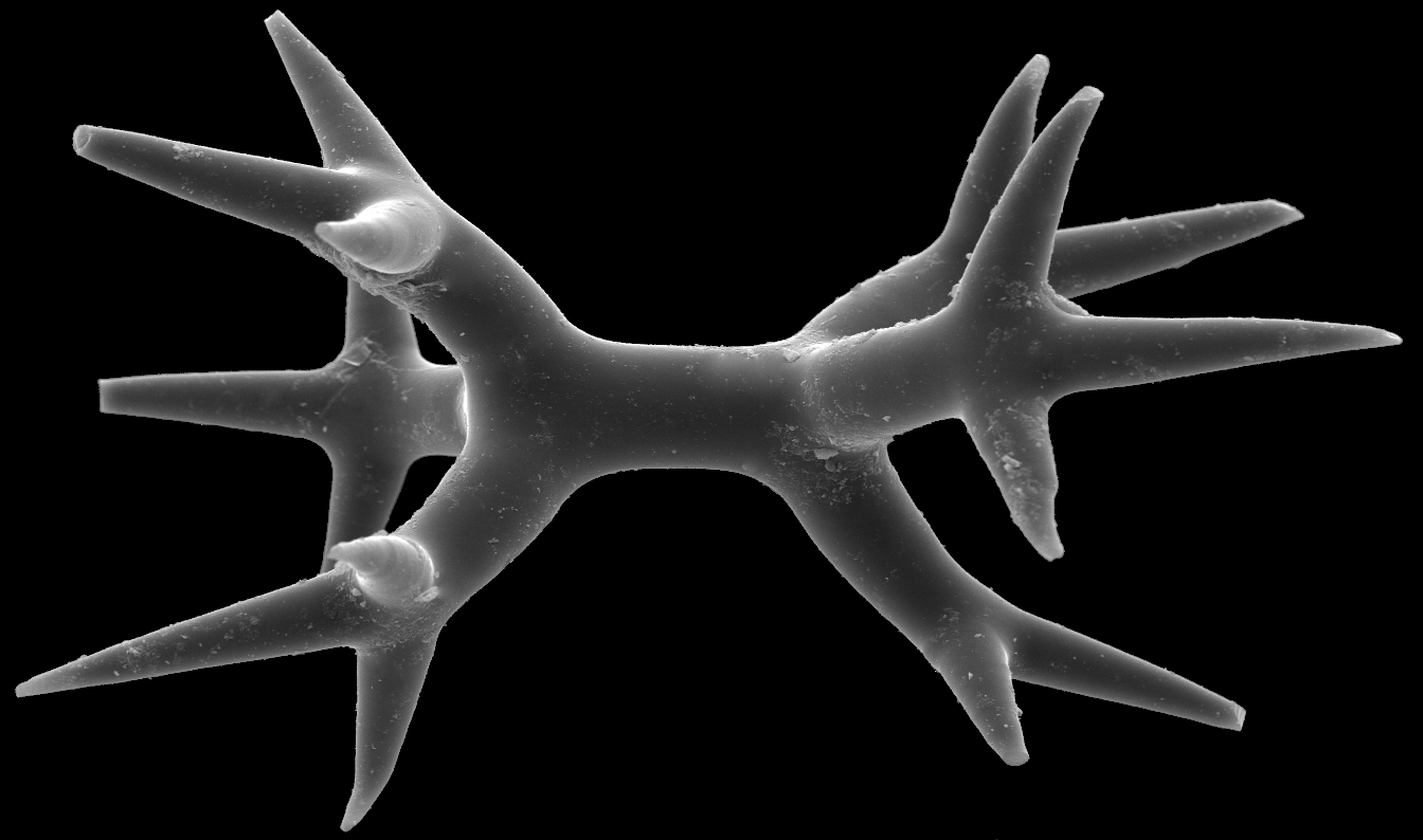 In D.; a triaene in which the cladomes protrude from both ends of the rhabd(ome) (e.g., genera Samus, Amphitethya); see also amphi in glossary.