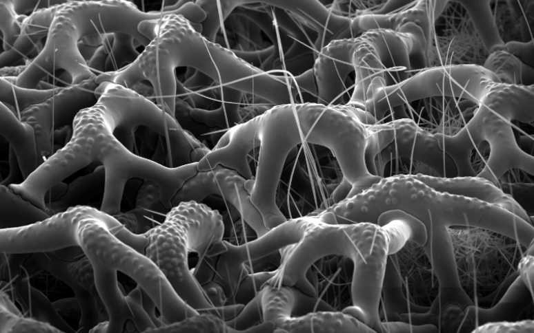 In DL.; an arch‐shaped desma, usually branched with two to four arms directed downward; may be smooth or more rarely tuberculate (with an uneven surface), with short monaxial crepis; zygomes terminal (articulating with lateral and/or upper part of other m.; articulation “hand to shoulder”) (e.g., family Pleromidae); m. form articulated skeleton.
