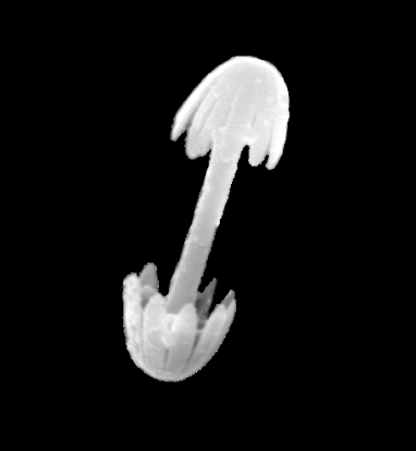 In D.; a microsclere characterized by a shaft with discoidal or anchorate ends (e.g., genus Iotrochota); compare with amphidisc.
