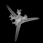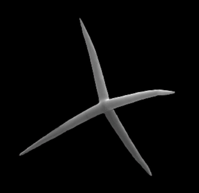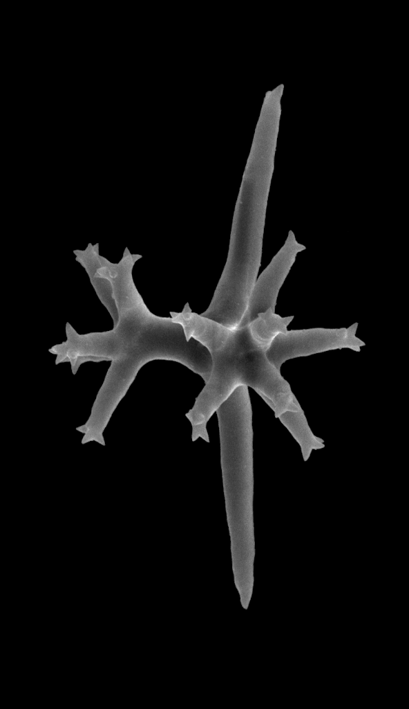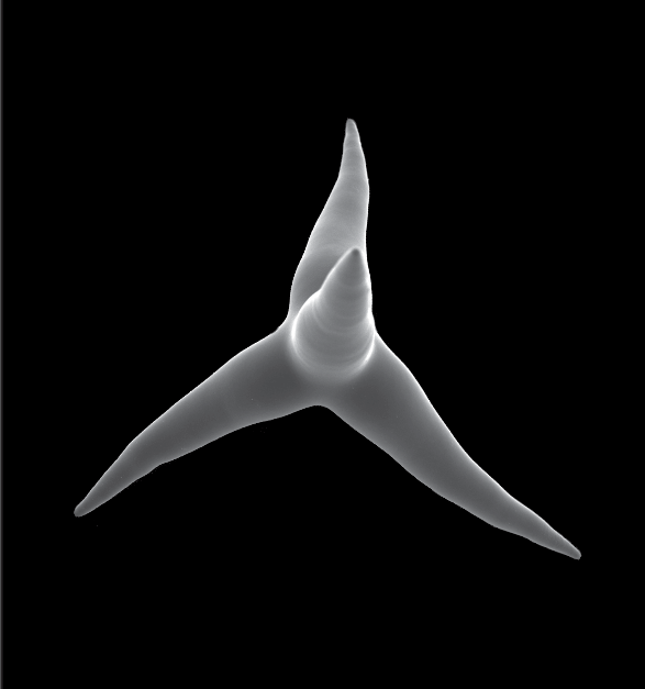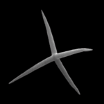 In D., Ho.; a symmetrical tetractin with four rays of equal length not situated in the same plane and with the angle of 120° between each ray (e.g., Dercitus bucklandi, genus Calthropella and several genera of Ho.).