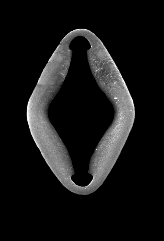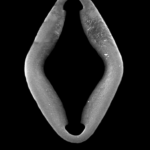 In D.; an oval, ring‐shaped microsclere with small indents at the inner side of the ring (e.g., genus Merlia); not circular but rather droplet‐shape in any orthogonal section (excluding the idents); c. are fused C‐formed spicules (e.g., diancistras); compare with cercichela.