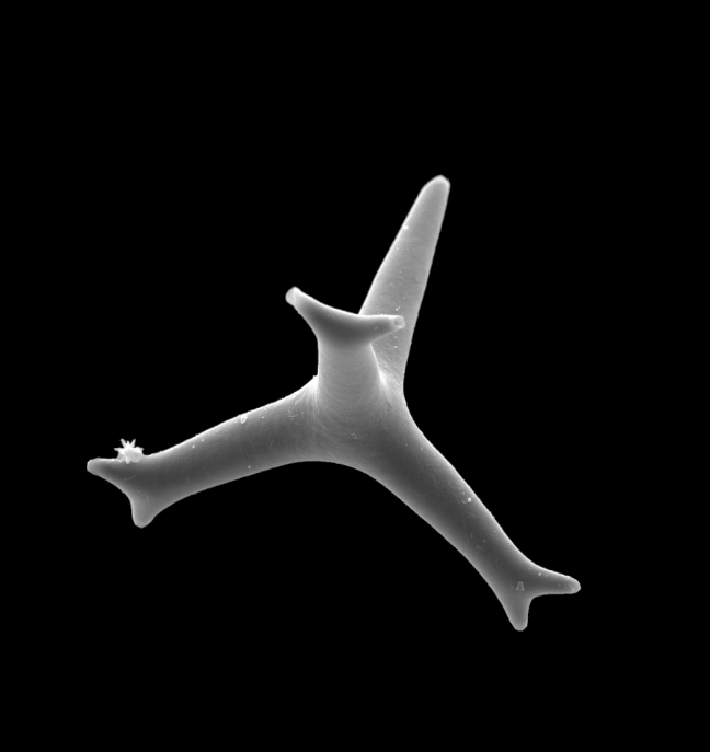 In D.; a calthrop with dichotomously divided clads/rays (e.g., Dercitus (Stoeba) lesinensis); often confused with dichotriaene.