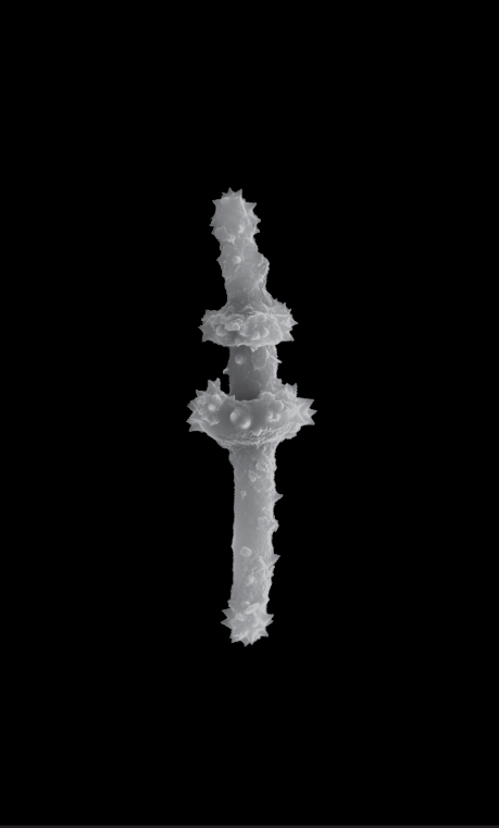 In D.; a microrhabd equipped with two or more similar discs along the shaft (e.g., genus Didiscus); compare with trochi‐ and discorhabd.