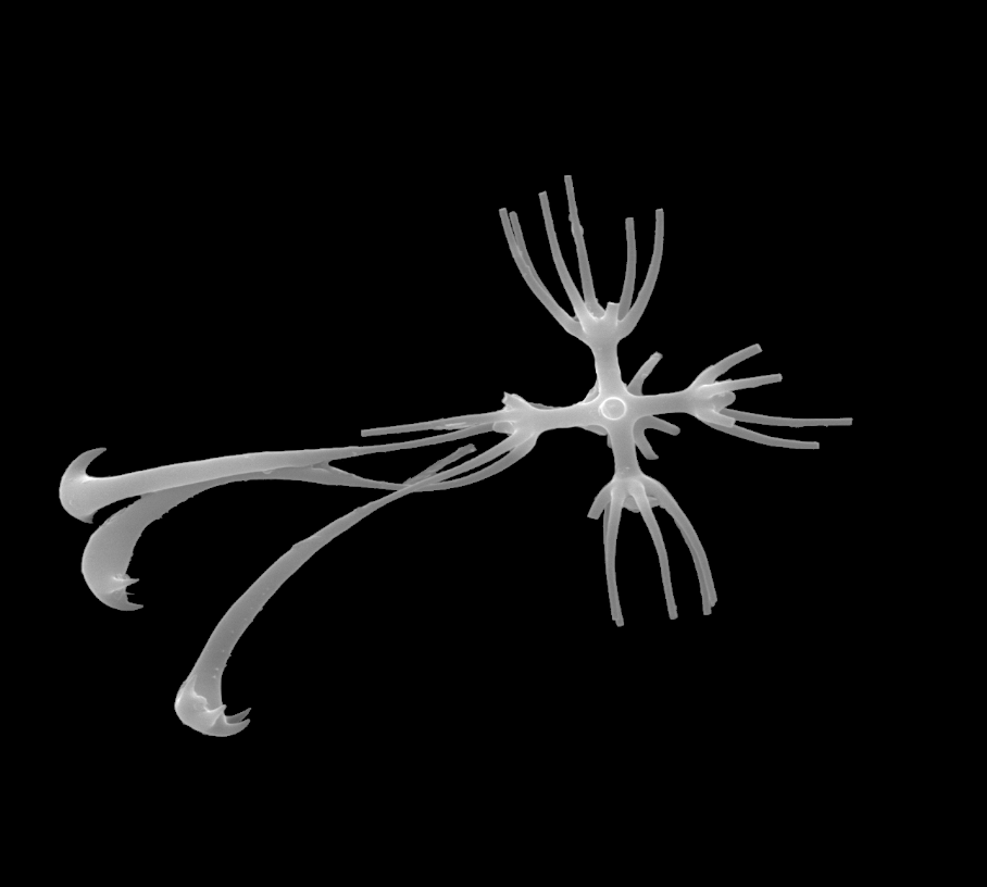 In H.; a specific type of discohexaster with rather thick S-shaped secondary rays ended with a plate provided with teeth, claws, or in other words secondary rays carrying asymmetrical discs (e.g., Malacosaccus coatsi).