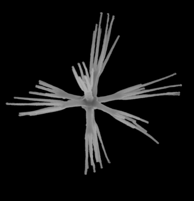 In H.; a microsclere with eight primary‐like rays originated from a hexaster with a fusion of six primary rays in a common center to aster, giving rise to usually eight pseudo primary rays; terminal rays project from these; usually secondary rays have discoidal outer ends (discoctaster); rarely they are oxyoidal (e.g., genus Acanthascus).