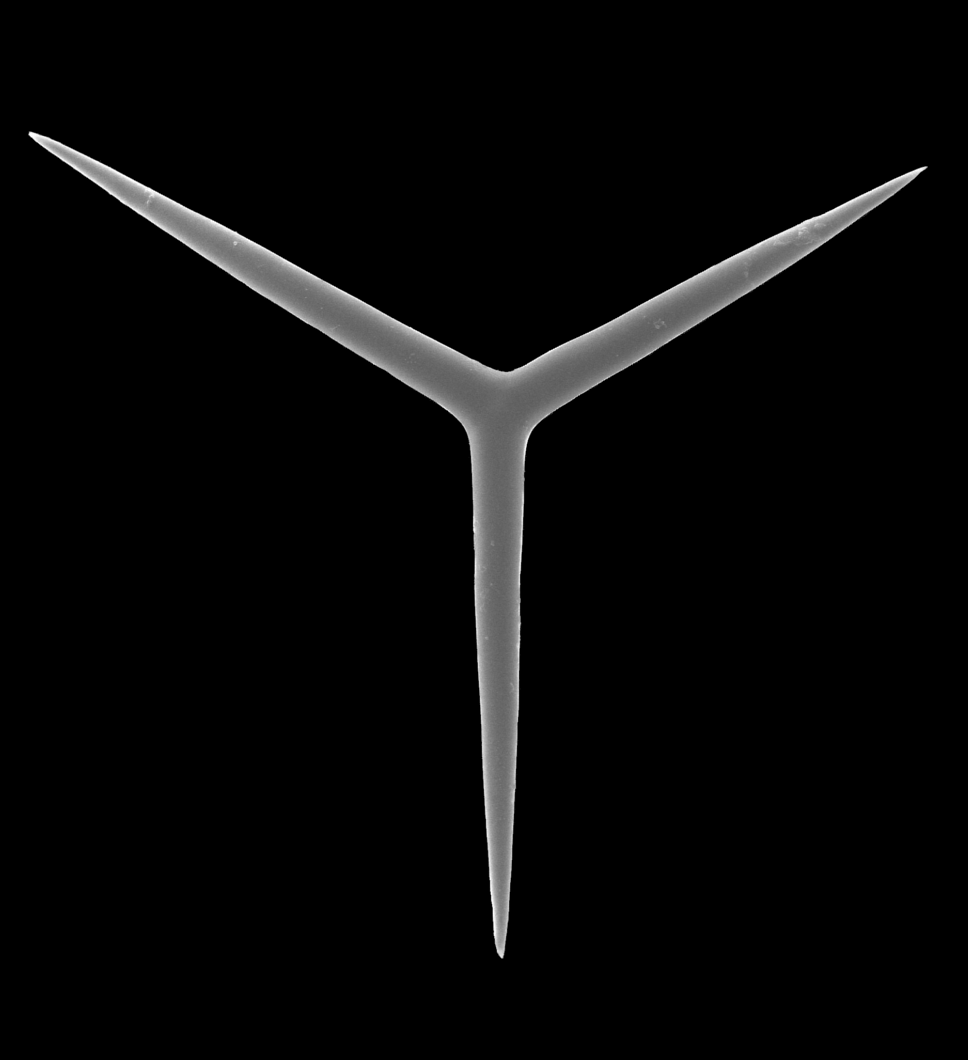 In C.; a triactine or tetractine spicule with basal rays of equal length, and with equal angles (120°) between them, when projected onto a plane perpendicular to the optic axis (e.g., Clathrina clathrus, Ernsta tetractina); compare with subregular spicules.