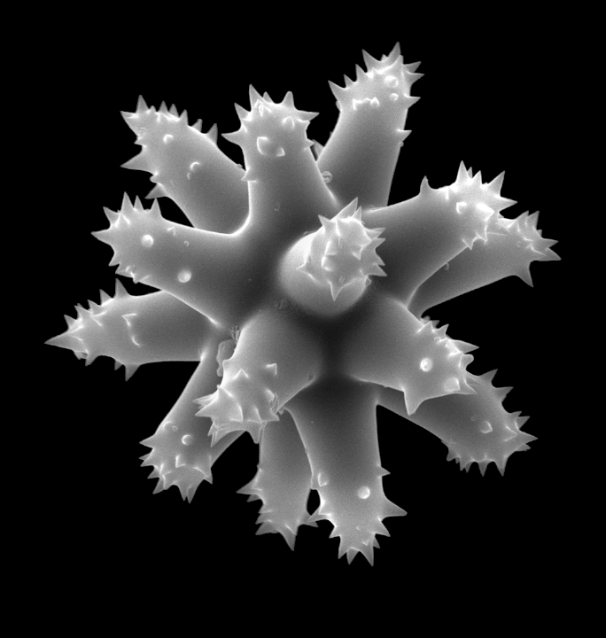 In D.; an aster without a centrum and with free, isodiametric, blunt rays (e.g., Asteropus moolenbeeki); compare with spheraster and spherostrongylaster.
