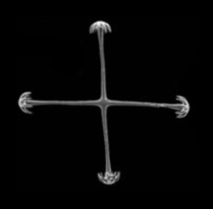 In H.; a microsclere consisting of four rays with discoidal outer ends (e.g., Amphidiscophora); for Hexasterophora the term discostauractin seems preferable; compare also with pentadisc.